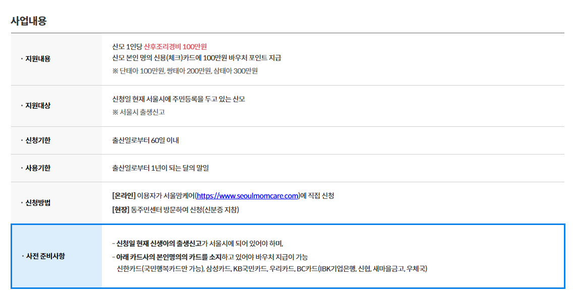 서울에 거주하는 모든 산모가 혜택을 받을 수 있으며, 출생 후 1년 동안 사용 가능한 100만 원 바우처를 제공합니다. 이 바우처는 산후 회복에 필요한 한약 및 다양한 한의학적 치료에 사용할 수 있습니다.