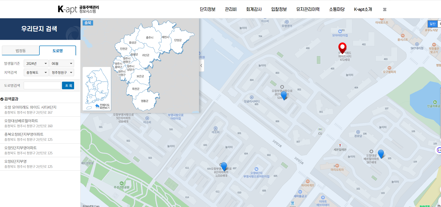 검색 결과에서 자신이 거주하는 아파트 단지를 선택합니다.